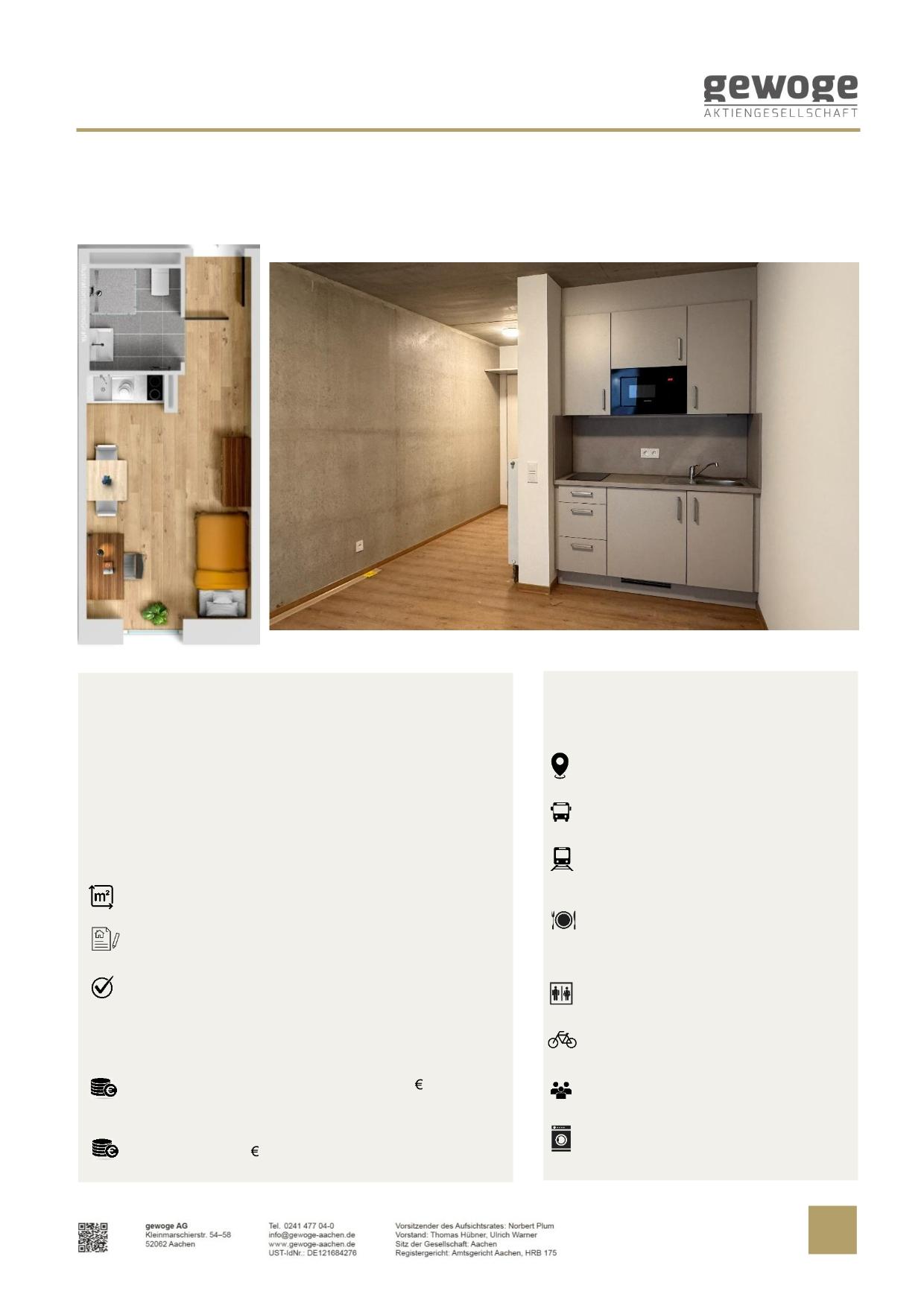 Die Einzelapartments sind ca. 23 m² groß und kosten nur 375 € warm (ohne Internet/Telefon). Für Aachen ist das eines der besten Angebote für junge Menschen in Ausbildung.